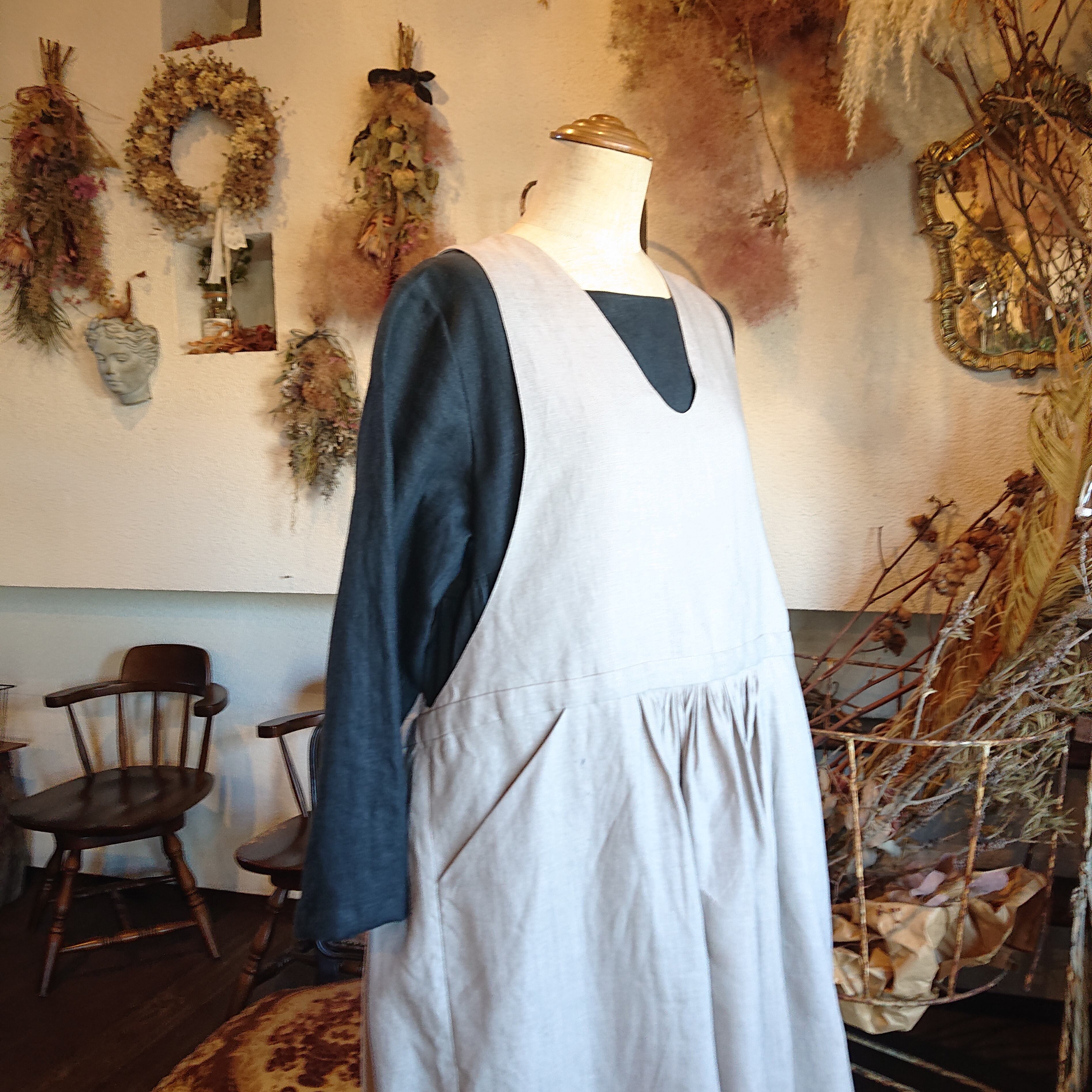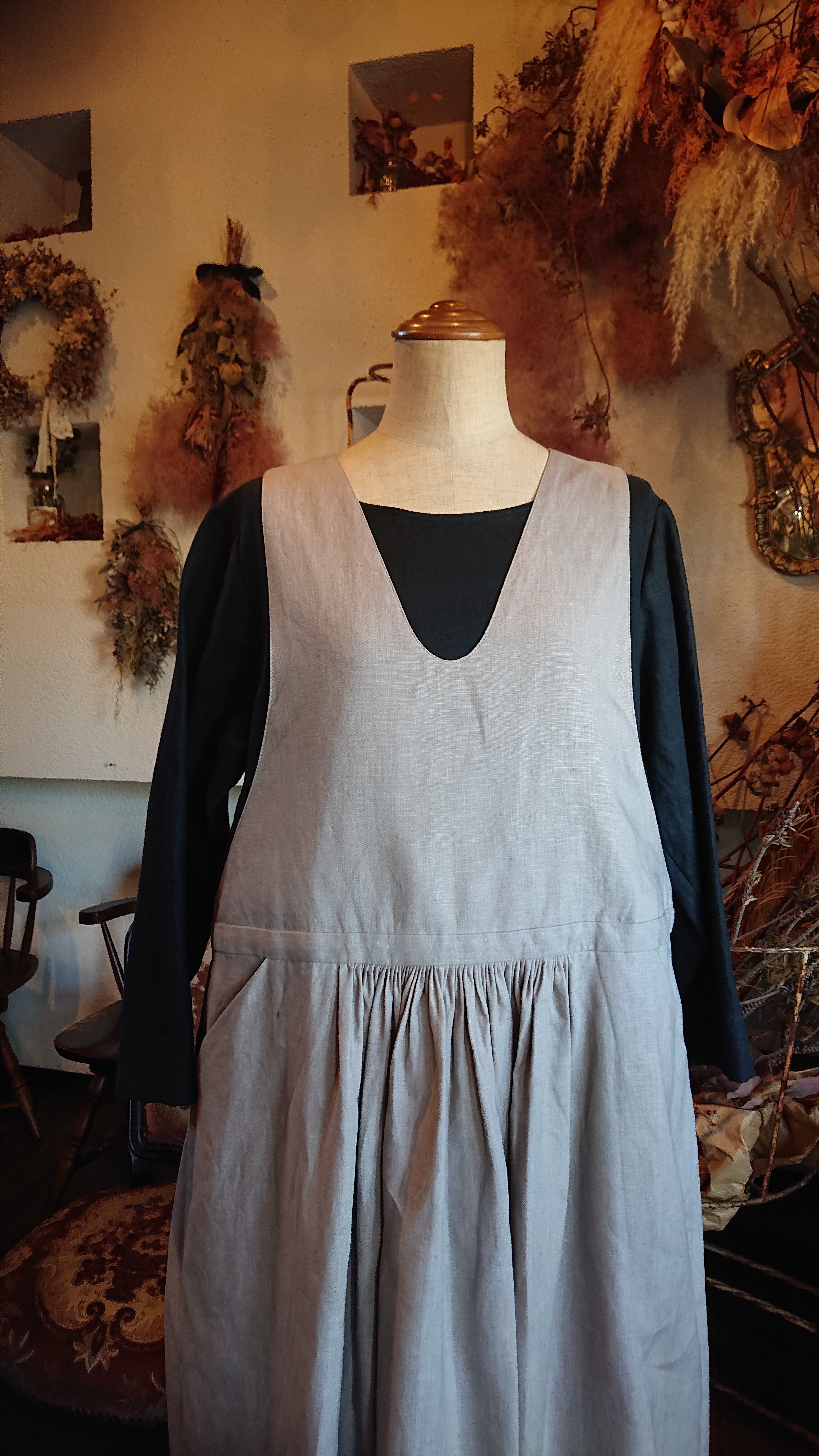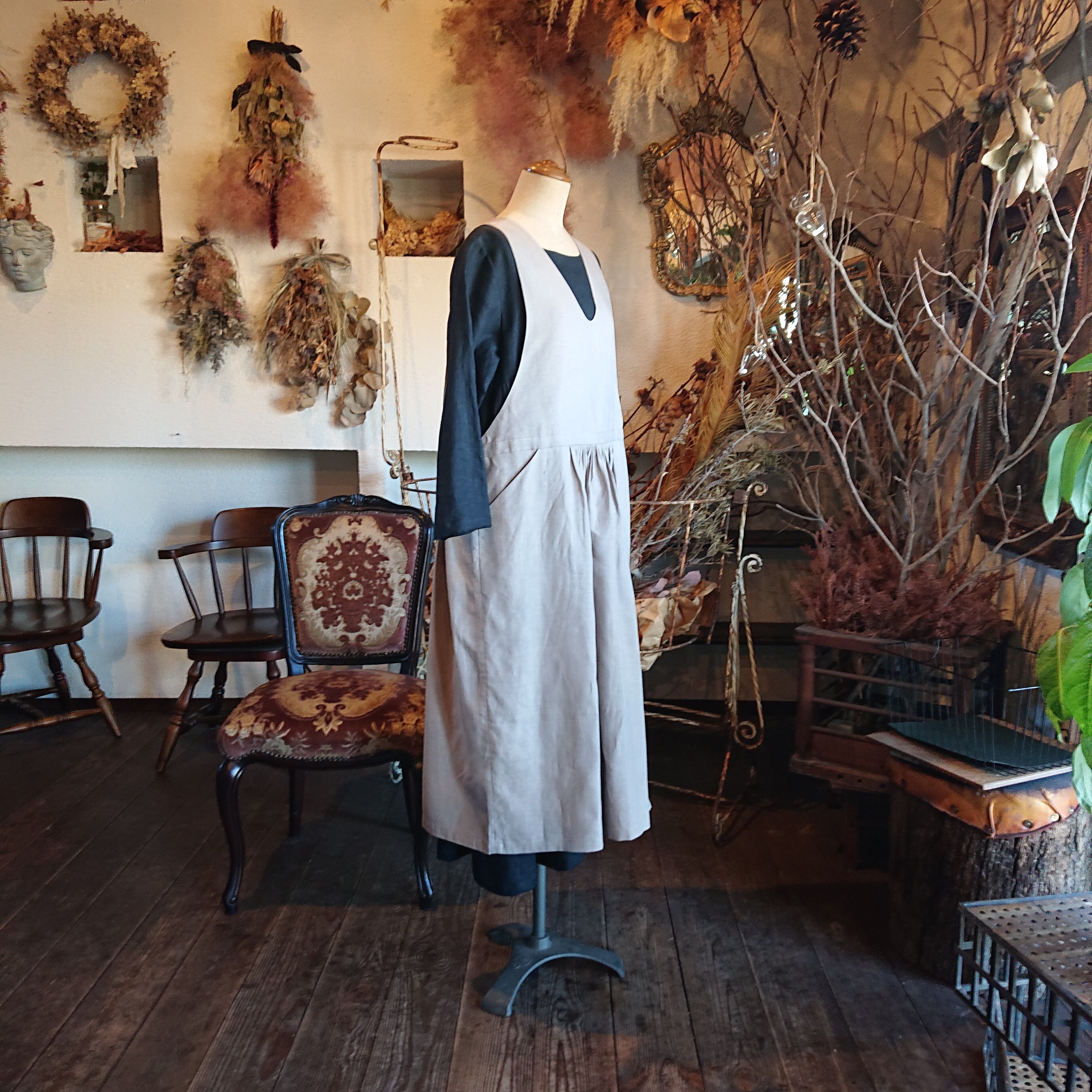 ※ホドナラフオリジナルエプロンドレスよりウエストを10㎝ほど細くしてジャンパースカートのように着こなせるように仕立てました。
